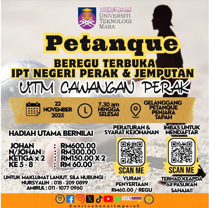 BAYARAN YURAN PENYERTAAN KEJOHANAN PETANQUE BEREGU TERBUKA PERINGKAT IPT NEGERI PERAK & JEMPUTAN UiTM CAWANGAN PERAK TAHUN 2025