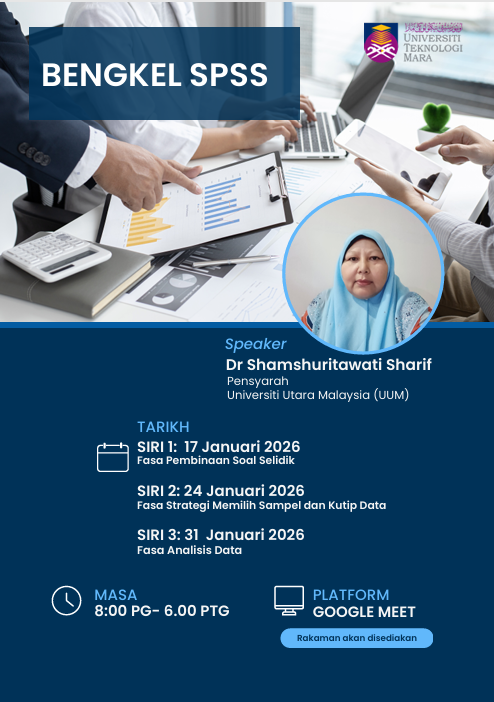 Program ini merupakan bengkel yang dirancang untuk memberi pendedahan praktikal kepada pelajar di dalam penggunaan perisian SPSS bagi analisis data kuantitatif.